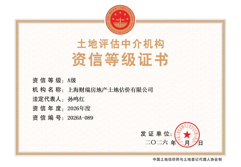 •   2026年上海市土地估价协会首次开展资信等级评定工作,获评一级资信等级的机构,方可经协会推荐参加全国土地估价机构信用评价A级资信的评选,我公司积极进行申报工作。3月23日,捷报传来,通过协会资信等级评定专家组评定,我公司获得2026年度一级资信等级。   上海财瑞房地产土地估价有限...